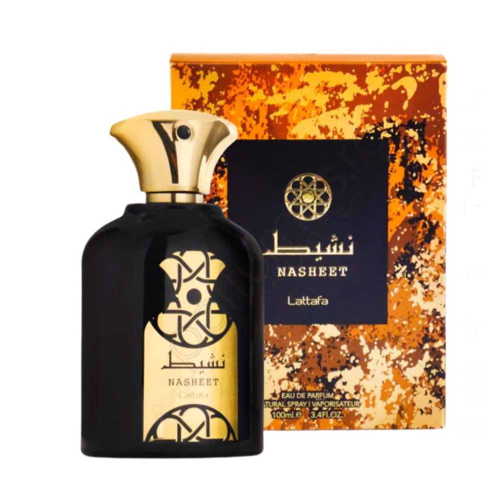 Nasheet – Lattafa – 100 ml . Fragrance Nasheet mixte aux senteurs poudrées, ambrées & boisées.Notes OlfactivesNotes de tête ⋅ Bois de GaïacNotes de cœur ⋅ Noix de MuscadeNotes de fond ⋅ Encens, Bois de Cachemire & Bois de Santal. L’Eau de Parfum Nasheet est le mélange de notes envoûtantes de Bois de Gaïac, de notes épicées de Muscade et de notes de boisées de Cachemire et de Santal vous emportant dans une chaleureuse expérience olfactive.Cette parfaite harmonie de notes nous offre une petite merveille aux senteurs orientales et captivantes.Parfum élégant et mixte qui conviendra parfaitement à toute femme et homme amoureux de fragrances poudrées.